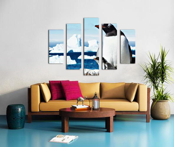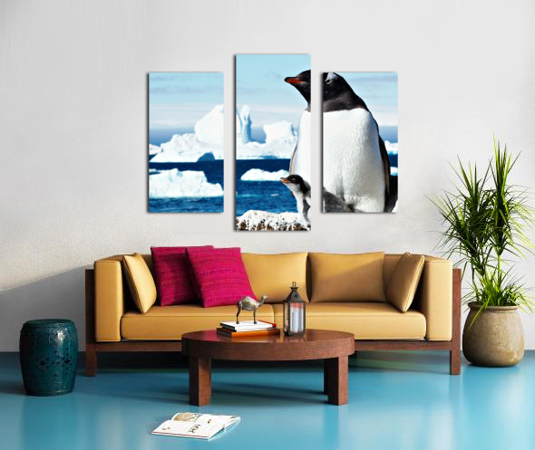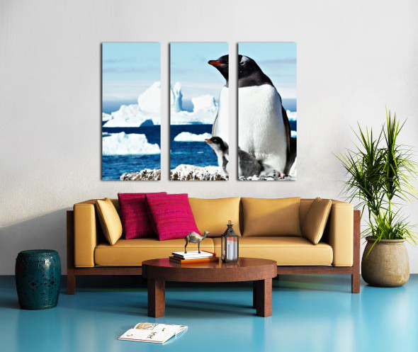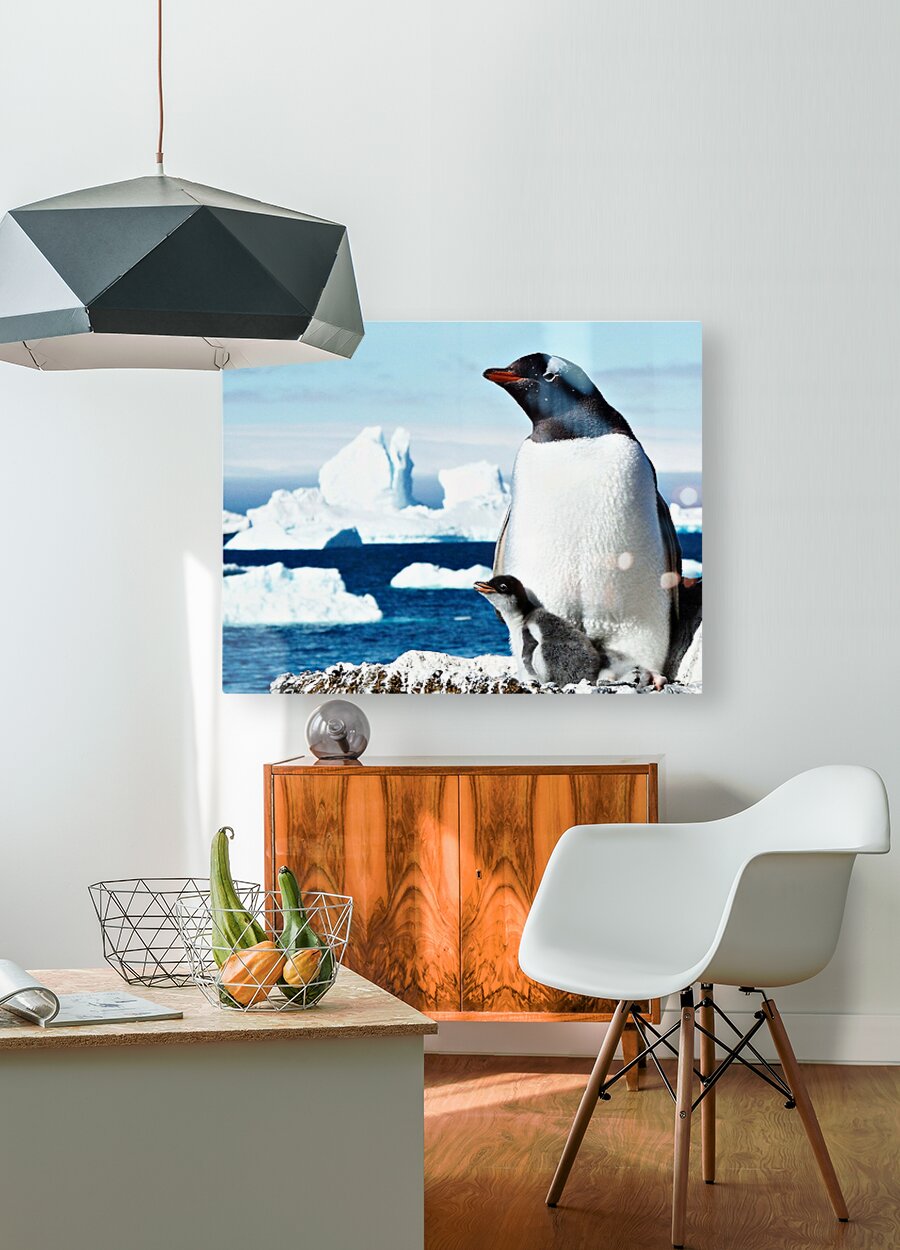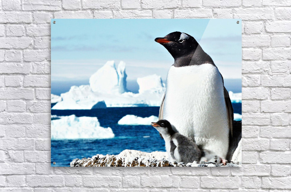 Gentoo Mother and Baby Penguins Picture Frame Printing