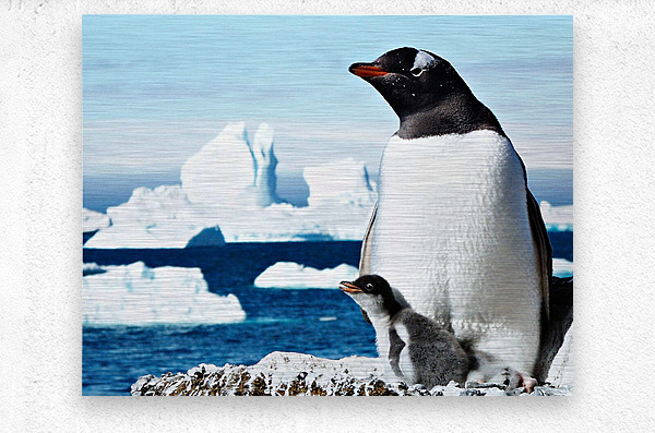 Get this artwork "Gentoo Mother and Baby Penguins" in a framed print.