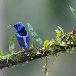 A perched red-legged honeycreeper in Costa Rica.