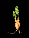 Two carrots intertwined together.